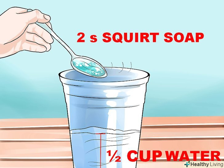 Налийте в чашку води і додайте засіб для миття посуду. у вас повинен вийти рідкий мильний розчин. Візьміть півсклянки води і додайте кілька крапель рідини для миття посуду; якщо розчин буде недостатньо пінитися, додайте ще трохи засобу. [11]