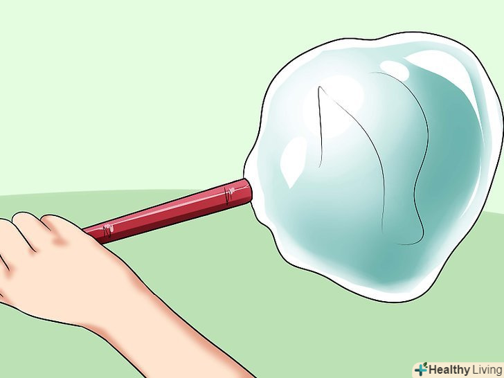 Видихніть дим через сухий край соломинки, що не побував в мильному розчині. видихайте повільно і акуратно, поступово надуваючи міхур і намагаючись, щоб він не лопнув. Видихнувши весь дим, затримайте дихання і обережно відсуньте соломинку, відокремлюючи її від міхура. [12]- Не вдихайте повітря через соломинку, інакше ваш рот тут же заповниться милом.