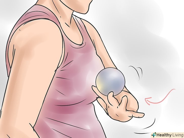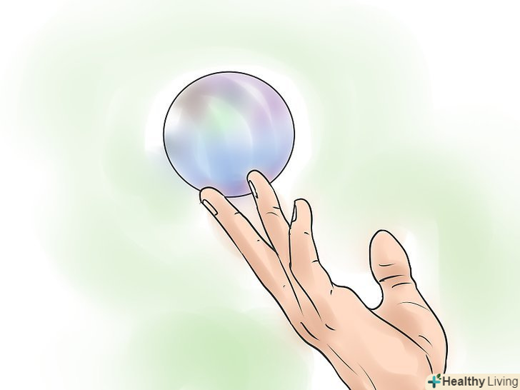 Долоню з колискою через край (переклад). Тримайте кулю на відкритій долоні. Встановіть його на верхній, м'ясистої частини між третьою і другою кісточками. Тепер, тримаючи пальці разом і прямо (але не напруженими), трохи підніміть кулю і поверніть відкриту долоню всередину, все ще під кулею - так, щоб він котився по зовнішньому краю вказівного пальця і зупинився в колисці на верхній частині руки. Тримайте його так кілька хвилин. Тепер поверніть його в долоні назад обертаючим рухом в протилежну сторону, опустивши площину руки вниз, якщо вам це потрібно. Тренуйтеся, поки куля рухається якомога менше, в той час як рука рухається під ним. Зрештою настане приємний момент, коли ви інстинктивно будете це відчувати і виконувати рух без зусиль.