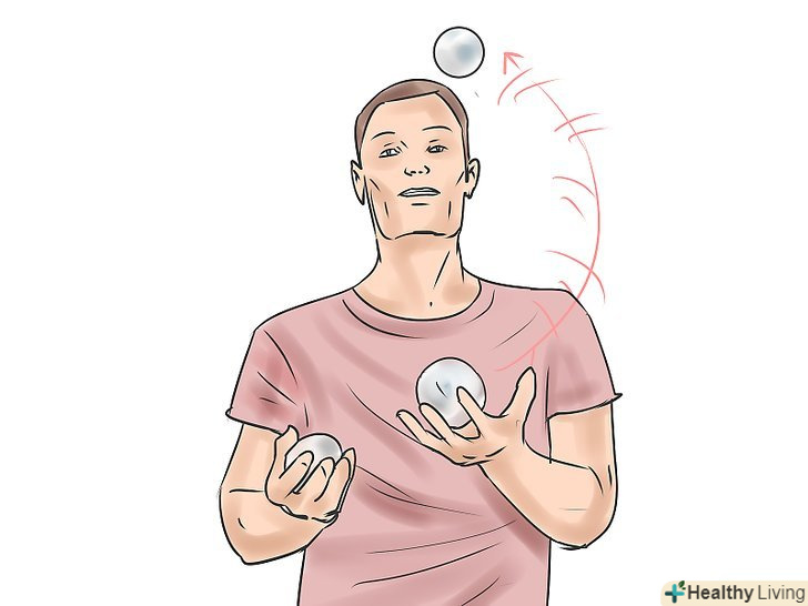 - Використовуйте всю руку. Використовуючи для жонглювання тільки силу руки і передпліччя, змусить зап'ястя часто робити помилки і згинати пальці, що призведе до кострубатого виконання. Це можна виправити, тримаючи лікті, трицепси, плечі і лопатки, що беруть участь навіть в малих передачах і метеликах, щоб забезпечити контроль і такий баланс, який вам потрібен.