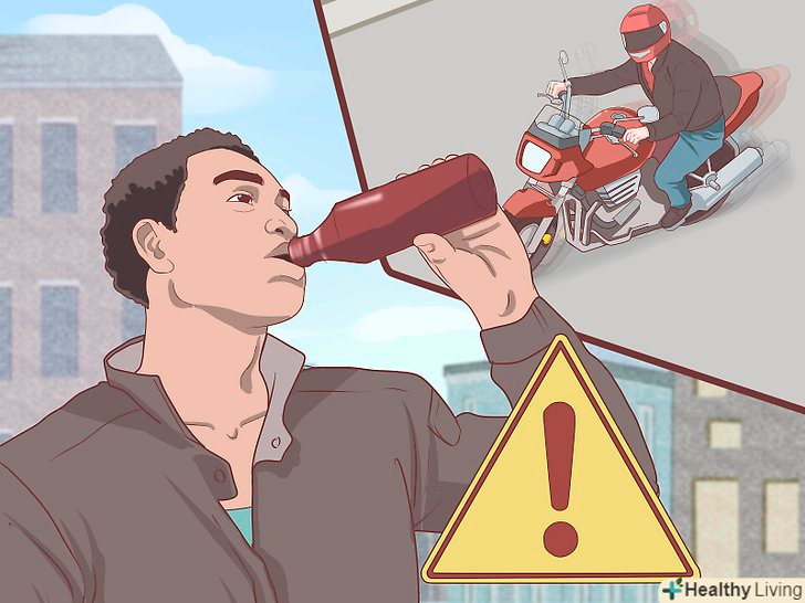 Не сідайте на мотоцикл під впливом наркотиків або алкоголю. Стимулюючі речовини підвищать ризик аварії. Алкоголь уповільнює реакцію, негативно впливає на здатність тримати рівновагу і перешкоджає адекватній оцінці обстановки на дорозі.[10] не піддавайте себе та інших ризику. Крім того, водіння під впливом алкоголю і наркотиків заборонено.