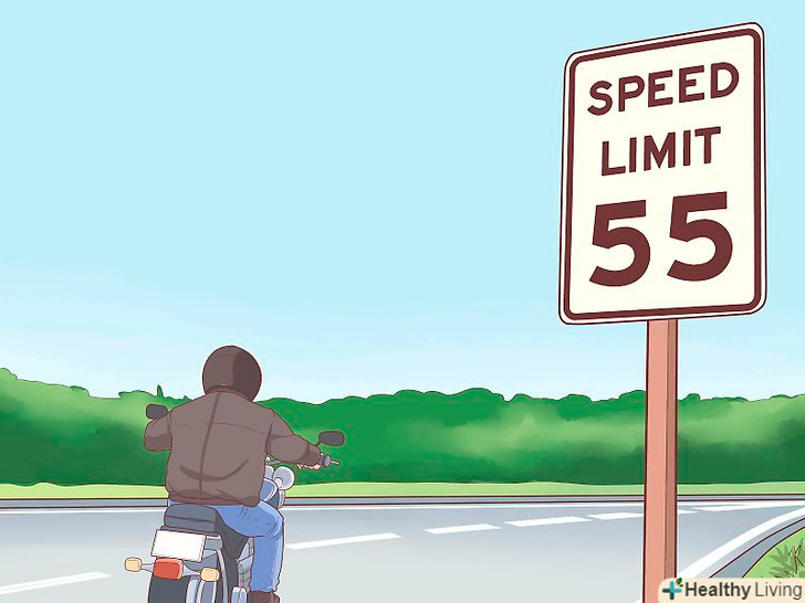 Будьте обережні і тверезо оцінюйте дорожню обстановку.дотримуйтесь правил дорожнього руху, стежте за знаками і уникайте ризикованих маневрів. Багато аварій відбуваються з вини безрозсудної поведінки водіїв, а це означає, що їх можна було б уникнути.- Не перевищуйте швидкість. Більше третини всіх аварій за участю мотоциклістів пов'язані з перевищенням швидкості.[14] занадто велика швидкість робить мотоцикл менш керованим, збільшує гальмівний шлях і підвищує ризик того, що зіткнення буде фатальним.