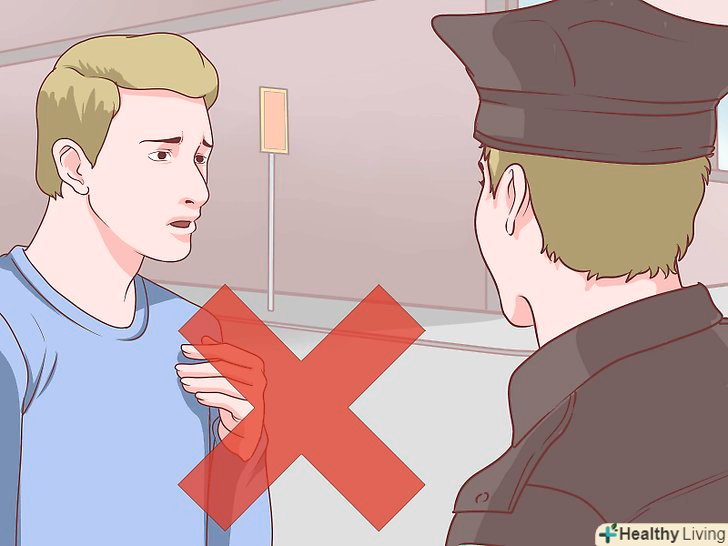 Зберігайте спокій.після аварії складно залишатися спокійним, проте не варто робити і говорити нічого, що може погіршити ситуацію або змусити вас визнати провину. Наприклад:[4]- Не сперечайтеся з іншими учасниками аварії;