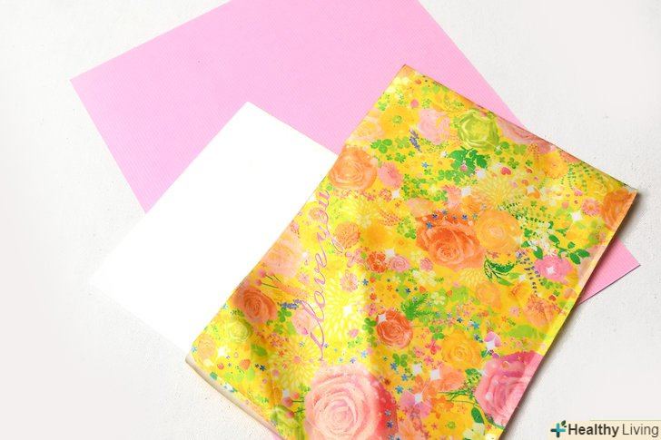 Зберіть необхідні матеріали. знайдіть конверт, відрізок красивих шпалер і лист карткового паперу. В ідеальному варіанті колір вашого конверта повинен підходити до кольору шпалер.- Розмір конверта визначить розмір необхідного відрізка шпалер.