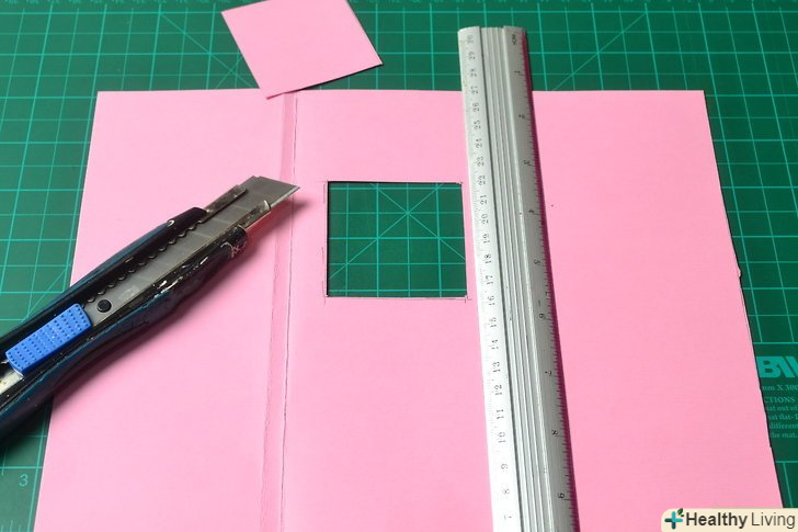 Виріжте віконце в центральній смужці паперу. згодом Центральна смужка стане лицьовою частиною листівки. Розмір того, що ви хочете вставити по центру, визначає розмір самого віконця.- Як правило, віконце повинно займати менше половини листівки.
