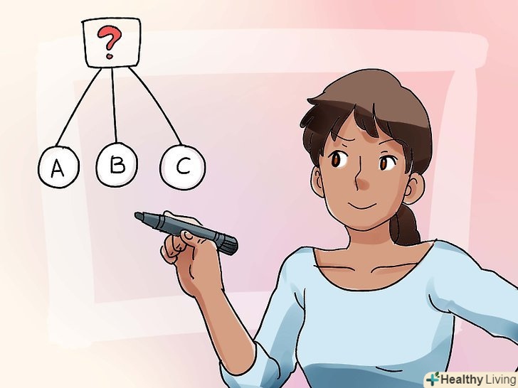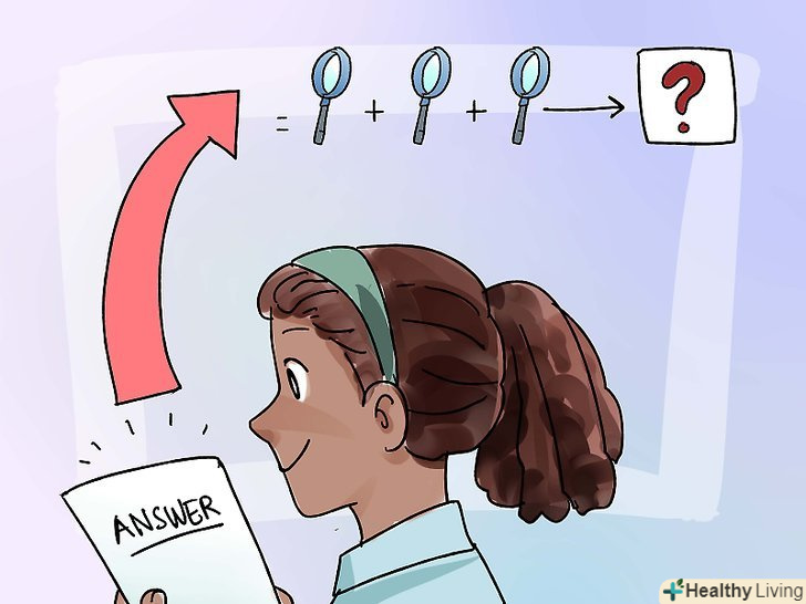 Оцініть можливості. складну загадку буде легше відгадати, розбивши її на частини, як було розказано в другому пункті.- Хоча відгадування загадок по частинах або роздумування над кількома можливими рішеннями на перший погляд може здатися незручним або важким, з часом ви будете робити це набагато швидше і без особливих зусиль.