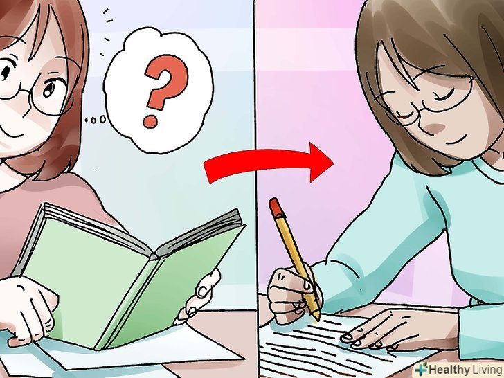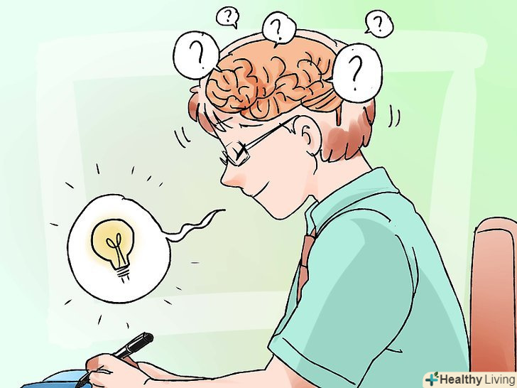 Спробуйте прочитати що-небудь складне, а потім підведіть підсумок. наприклад, ви можете прочитати складний газетний матеріал, а потім написати коротку анотацію, передавши весь сенс декількома ключовими фразами. Дослідники стверджують, що це допоможе вам скласти «загальну картину», а також помічати деталі – навик, який також стане в нагоді при відгадуванні загадок. [9]- Перефразування змісту своїми словами також може допомогти вам розвинути лінгвістичну гнучкість і поліпшити пам'ять. Легше запам'ятовувати сенс, коли ви витратили трохи часу на його переказ, оскільки мозку довелося попрацювати для того, щоб систематизувати його для кращого розуміння.