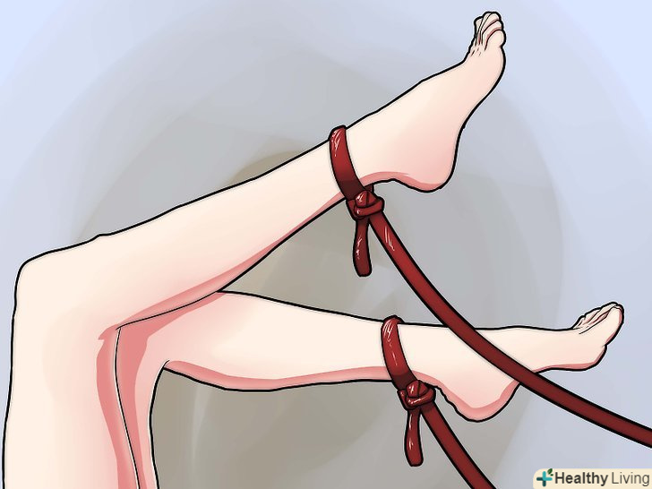 Прив'яжіть ноги до нижніх опор досить туго для вас. не користуйтеся ковзаючим вузлом, тому що він може занадто затягнутися, коли ви будете боротися з мотузкою, і порушити кровообіг. Пам'ятайте, що тривале перебування в позі з розсунутими ногами може стати з часом дуже незручним.