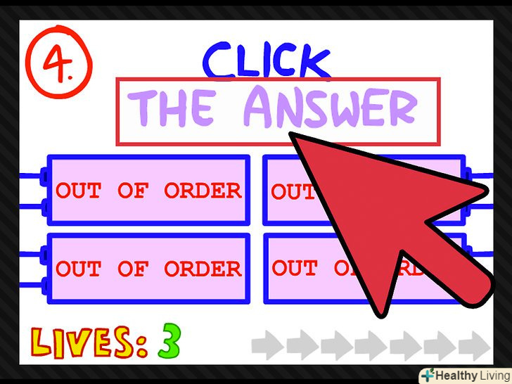 Мисліть буквально. Прочитайте питання слово в слово. Навіть якщо значення речення здається очевидним, вдумуйтеся в кожне його слово. Наприклад, якщо вам пропонують «клікнути на відповідь»– клікніть безпосередньо слово «відповідь».- Підказкою може бути помилка або допущена в слові помилка.
