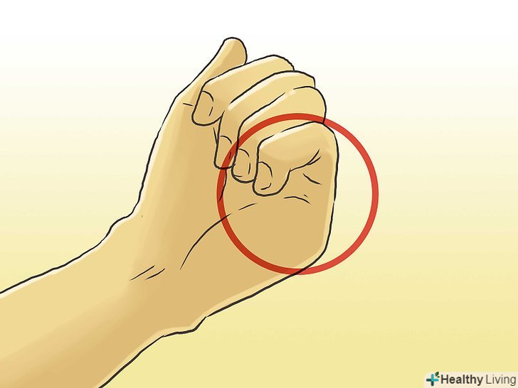 Стисніть руку в кулак, залишивши зазор між мізинцем і долонею. Стисніть кулак, залишивши достатньо місця всередині нього, щоб можна було вільно вставити туди кінець запальнички. Пальці повинні бути стиснуті відносно щільно, щоб газ не просочувався між ними, коли ви почнете заповнювати їм кулак. Верхній отвір кулака в тому місці, де вказівний палець стикається з долонею, слід затиснути великим пальцем.- Постарайтеся уявити собі, що тримаєте в кулаці воду і намагаєтеся не дати їй пролитися. Трюк, по суті, полягає в тому, щоб заповнити кулак газом і підпалити його в момент розкриття руки.