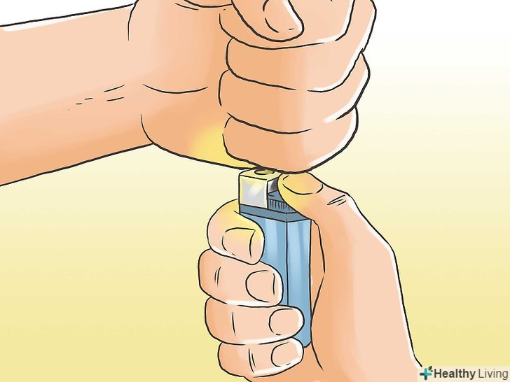 Вставте в кулак кінець запальнички. вставте в руку на достатню глибину кінець Запальнички з крісалом, щоб можна було заповнити газом створену кулаком порожнину. Недостатньо просто піднести запальничку до нижнього краю долоні, вам необхідно саме вставити запальничку всередину.