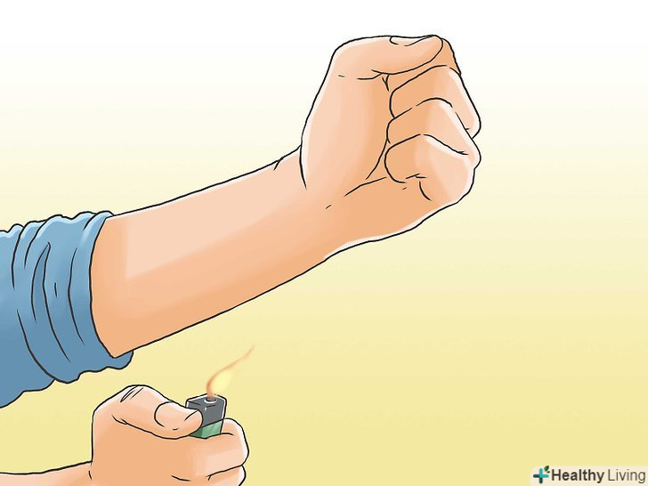 Відведіть запальничку від кулака і запаліть полум'я. після відліку п'яти секунд вам необхідно діяти швидко, щоб газ не встиг розвіятися. Відведіть запальничку приблизно на 30 сантиметрів від кулака, а потім запаліть її, давши іскру і знову включивши подачу газу.- Ні в якому разі не висікайте іскру, поки запальничка знаходиться у вас в кулаці, наповненому газом. Це надзвичайно небезпечно.