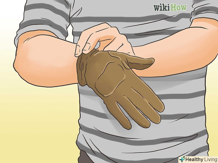 Прийміть запобіжні заходи. Якщо ви збираєтеся виконати цей трюк, вам слід вжити відповідних запобіжних заходів, щоб не підпалити свій будинок і не заробити опіки. Для виконання даного трюку вийдіть на вулицю, знайдіть ділянку вільного простору без густої рослинності навколо і інших горючих предметів. На випадок необхідності швидко погасити вогонь, вам слід мати під рукою відро води, також необхідно запросити дорослу людину, яка догляне за вами під час виконання трюку.- Якщо для захисту ви берете рукавички, то слід використовувати старі шкіряні рукавички або садові рукавички з покриттям, які будуть щільно облягати руки і мати досить міцну поверхню в області долонь. Незважаючи на те, що громіздкі рукавички з жароміцної матерії являють собою відмінний захист від опіків, зазвичай трюк із застосуванням тканинних рукавичок не виходить, більш того, він навіть може стати більш небезпечним. Громіздкі жароміцні рукавички часто гасять полум'я на корені, а звичайні тканинні рукавички можуть вбирати зріджений газ, збільшуючи ймовірність загоряння самих рукавичок і отримання опіків.