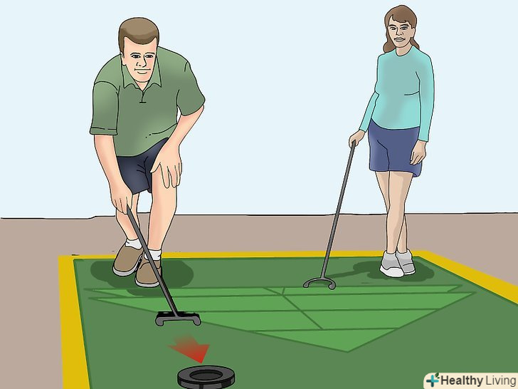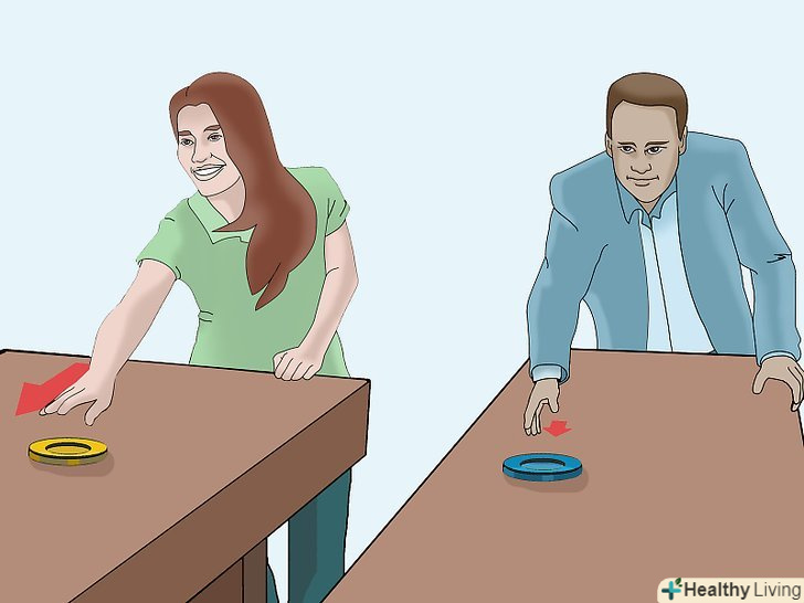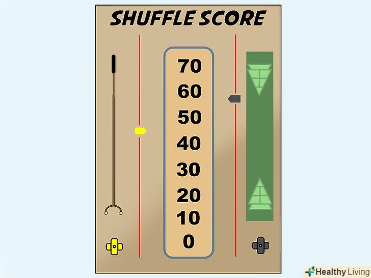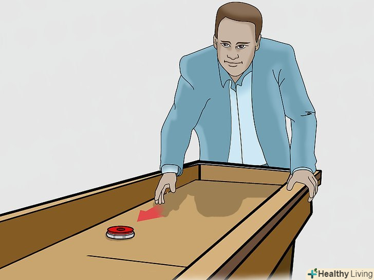 - Запускаючи диск або шайбу в шаффлборді або настільному шаффлборді, намагайтеся рухатися якомога більш плавно. Візьміть диск великим і вказівним пальцями і запустіть його вперед в напрямку мети за допомогою руху руки і кисті. Ви можете зробити так, щоб середній і безіменний пальці ковзали позаду диска – - так, ви зробите кидок більш точним.