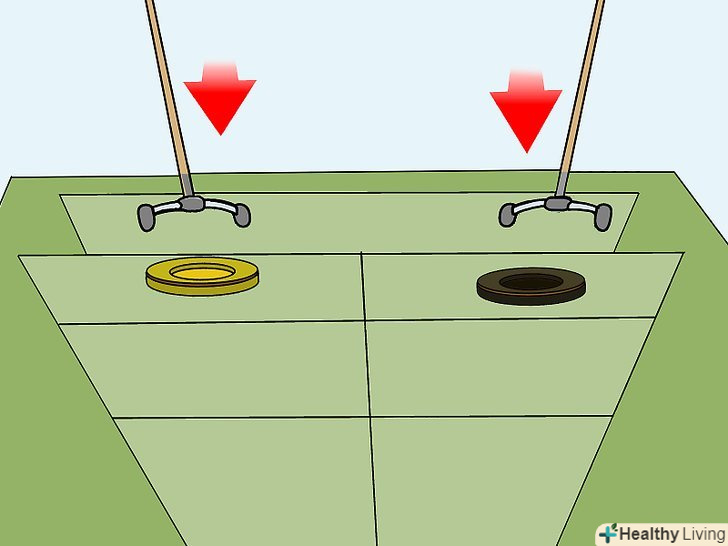 Роздайте кожній стороні по 4 дерев'яних диска і ключку. Диски мають той же розмір, що і диски для шаффлборда на корті і розрізняються за кольорами. Ключки схожі на ключки для шаффлборда на корті, за винятком її ударної частини, або "черевика," що складається з вирізаного з прямокутного шматка дерева півкола.- Гравці грають в командах по двоє, причому один з них грає з одного боку, а інший – з протилежного.