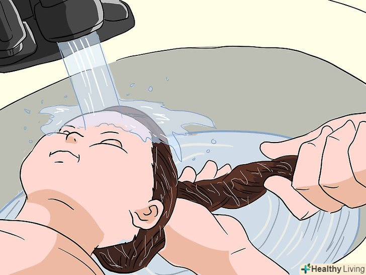 Увімкніть кран і налаштуйте злегка теплу воду. обережно підставте волосся під струмінь води, щоб намочити їх. Лялька повинна дивитися горілиць, щоб вода не потрапила в очі.