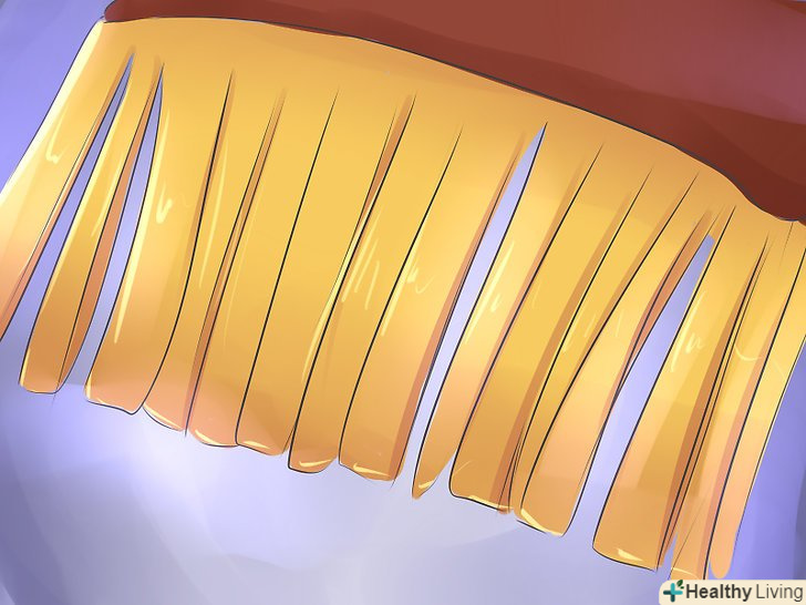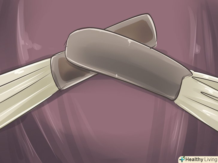 Знайдіть стару тканину і виріжте шматок довжиною 30 см. Вшийте його в будь-який кінець ремінця. Прикріпіть його до голови, зв'яжіть кінці разом або прикріпіть до кінців липучки. [5]