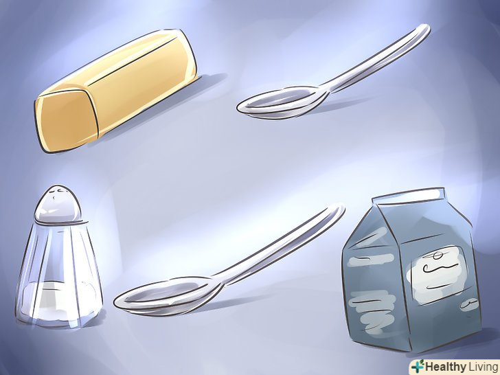 Потім зніміть суміш з вогню. додайте 85 г (6 столових ложок) масла, 3 г (половину чайної ложки) солі, 2,5 мл яблучного оцту і 60 мл (чверть чашки) густих вершків. Перемішайте отриману суміш, потім відкладіть, щоб вона охолола до кімнатної температури.