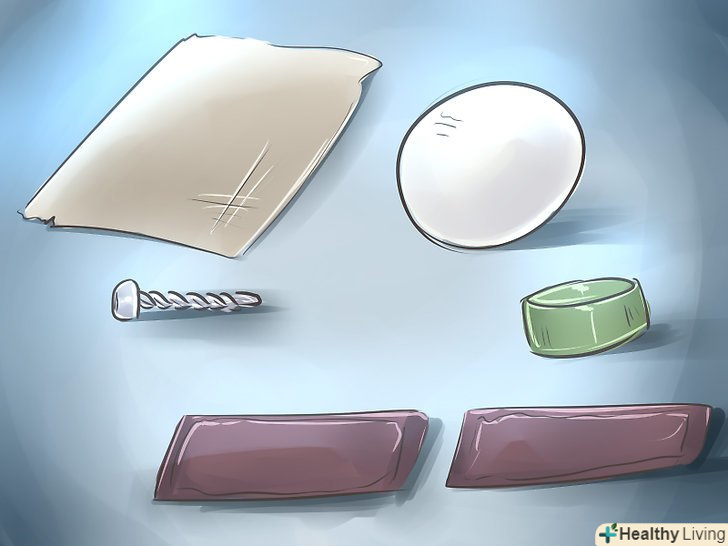 Знайдіть смужку тканини від старих штанів, гвинт, м'ячик для настільного тенісу, кришку від пластикової пляшки і трохи липучок.