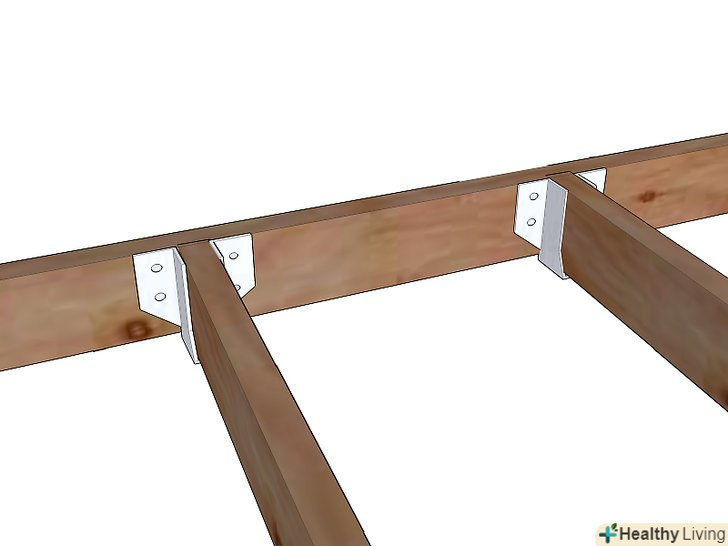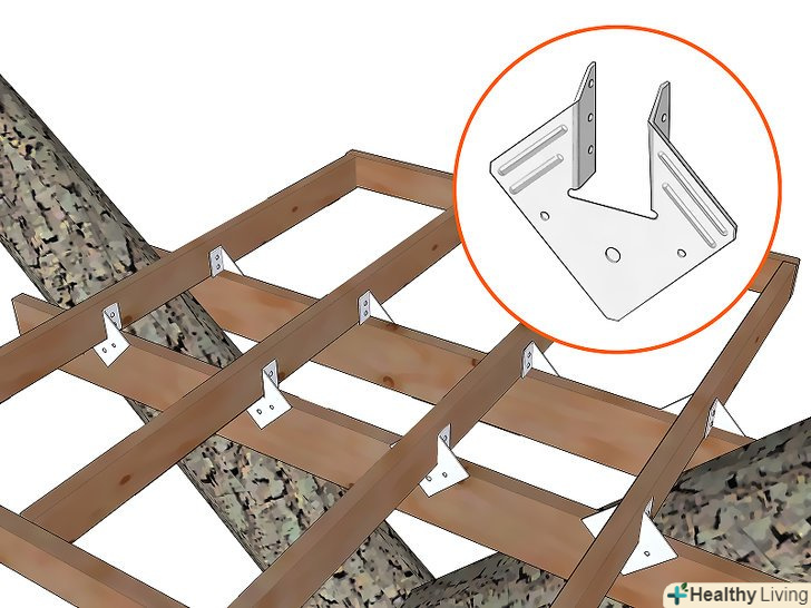 Закріпіть платформу за допомогою закрепів для балок. вісім оцинкованих закрепів для балок, розміщені на кінцях перпендикулярно розташованих балок 5 х 15, з'єднають їх двома «рамковими» балками 5 х 15 і зміцнять конструкцію.