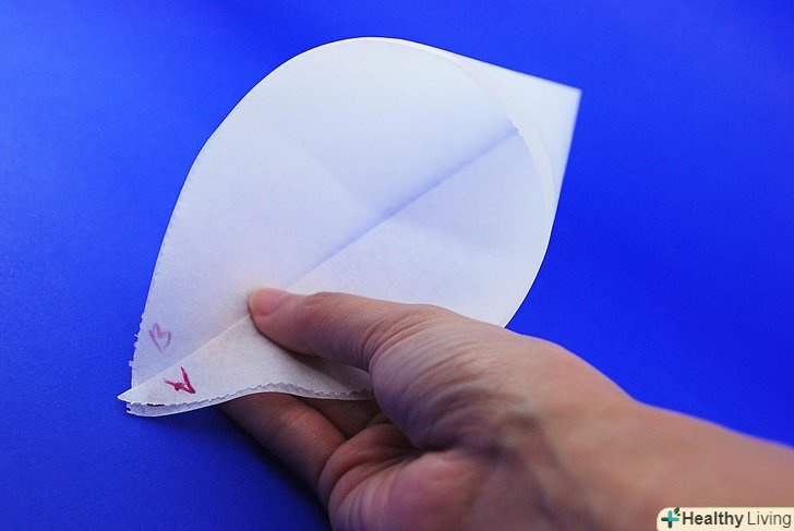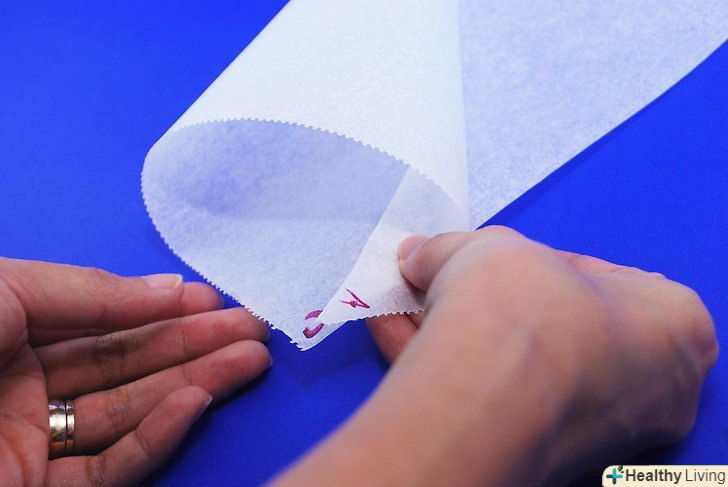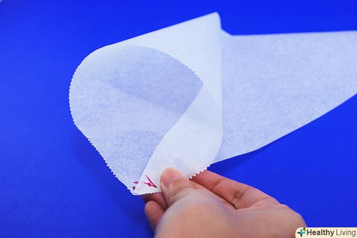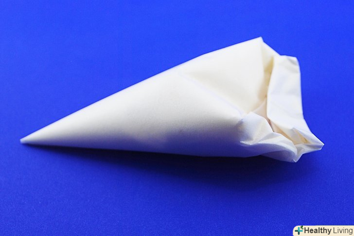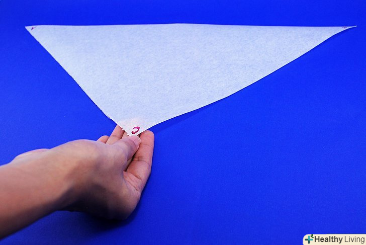 Виріжте з пергаментного паперу рівносторонній прямокутний трикутник (один кут 90 градусів, дві короткі бічні сторони рівні по довжині). як альтернатива, можна купити вже розрізану на трикутники для конусів пергаментний папір (доступно в магазинах з продажу прикрас для тортів).