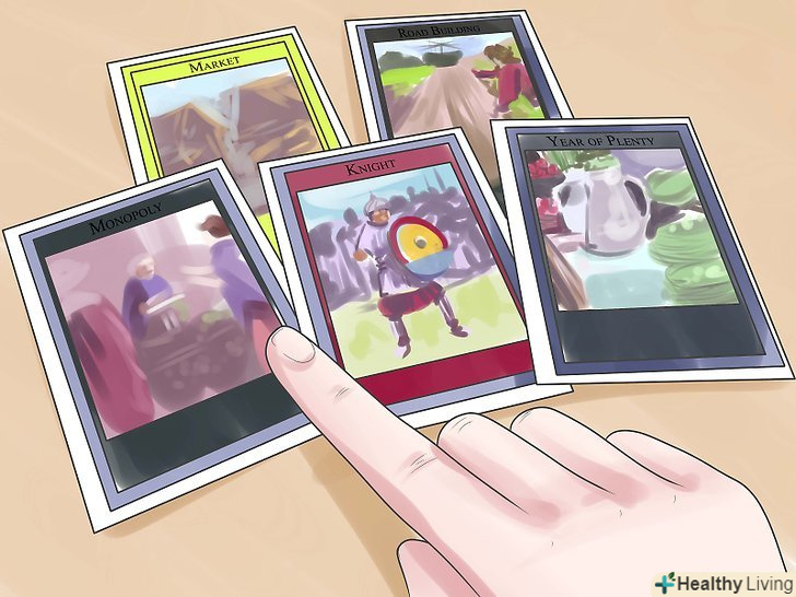 - Краще не захоплюватися покупкою карт розвитку. Краще зайнятися видобутком ресурсів, побудовою доріг, міст і зароблянням очок. Слідкуйте за тим, щоб у вас не було більше 7 карт.
