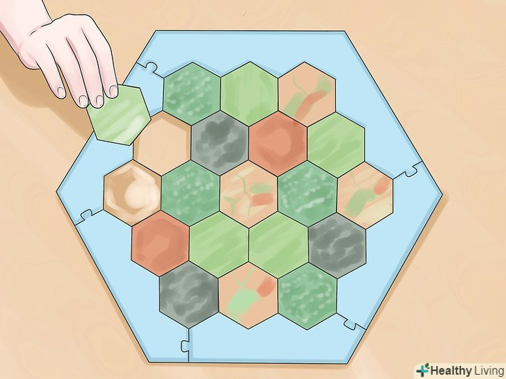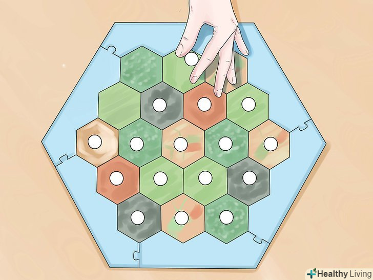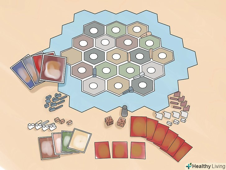 Перевірте, чи є у вас всі частини дошки для гри.- 19 шестикутників (4 вівці, 4 колоса, 4 дерева, 3 цегли, 3 руди і 1 пустеля).