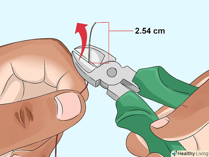 Зачистіть кінці дроту.скористайтеся ножем або спеціальним інструментом для зняття ізоляції з проводів і зачистіть обидва кінці дроту. Зніміть приблизно по 2,5 см ізоляції з кожного кінця дроту. Це дозволить вам під'єднати її до електроприладу.[6]
