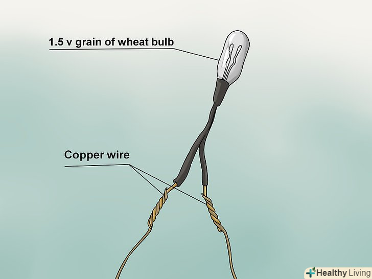 Приєднайте дріт до електроприладу.Підключіть два кінці дроту до контактів червоного світлодіода, мініатюрної лампи розжарювання або білого світлодіода на 1,5 В.або приєднайте до них Щупи вольтметра або мультиметра. Пам'ятайте про те, що ви будете виробляти зовсім низька напруга і більш потужні електроприлади (наприклад, звичайна лампа розжарювання) не живляться від такого генератора.[7]
