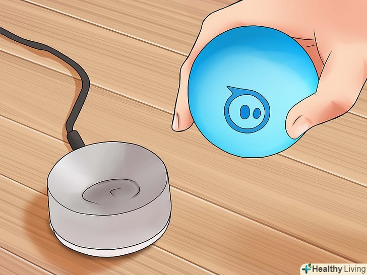 Помістіть кулю Sphero на зарядку важкою стороною вниз.важка сторона Sphero видно через кулю. Щоб легко виявити її, покладіть Sphero на тверду поверхню, після чого він сам розташується таким чином, що важка частина буде знаходитися знизу.[2]