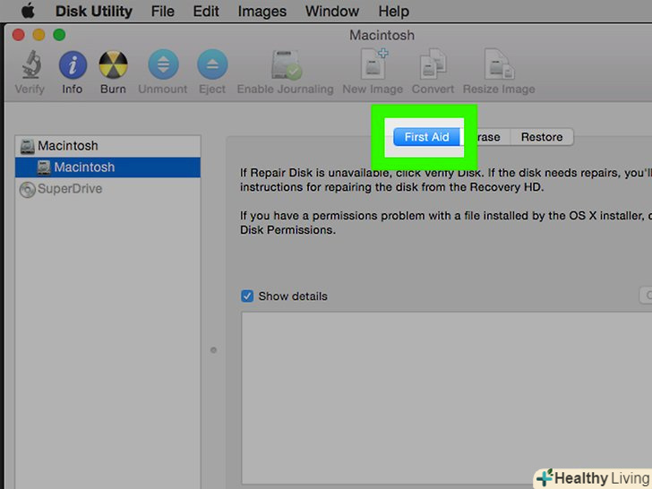 Клацніть поПерша допомога.ця вкладка знаходиться у верхній частині вікна.