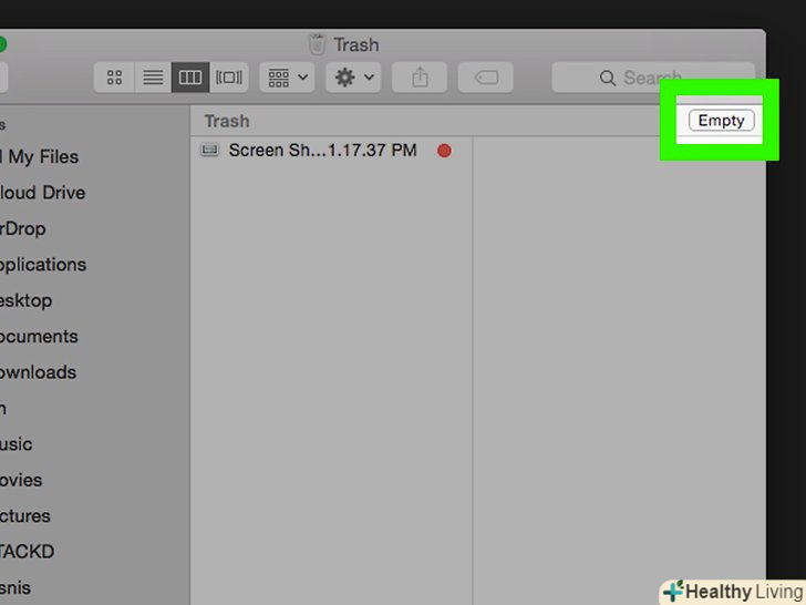 Очистіть кошик.видалені файли відправляються в кошик, в якій вони зберігаються до тих пір, поки ви не очистите її, тобто займають місце на диску. Щоб очистити кошик:- Клацніть по значку кошика в доці;