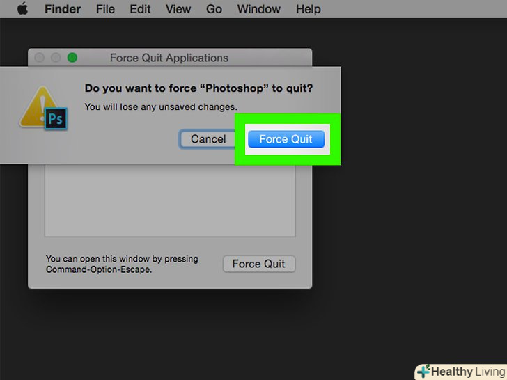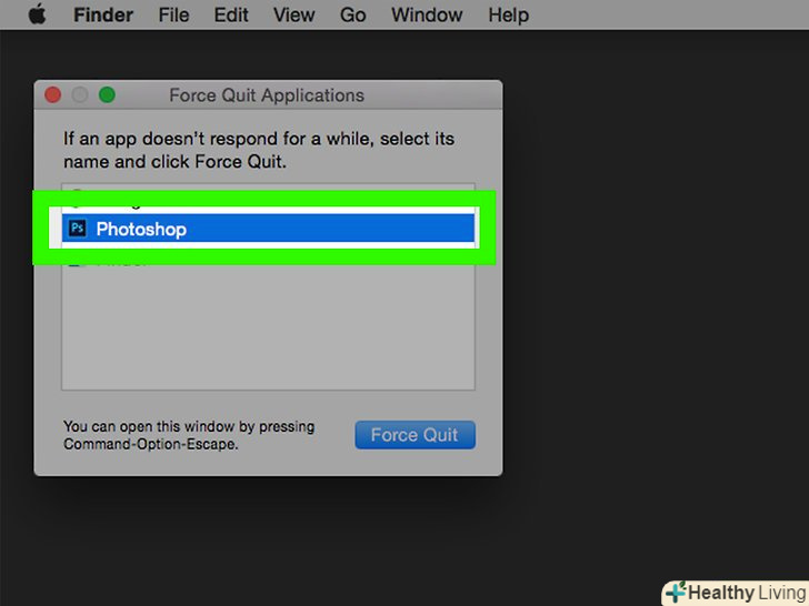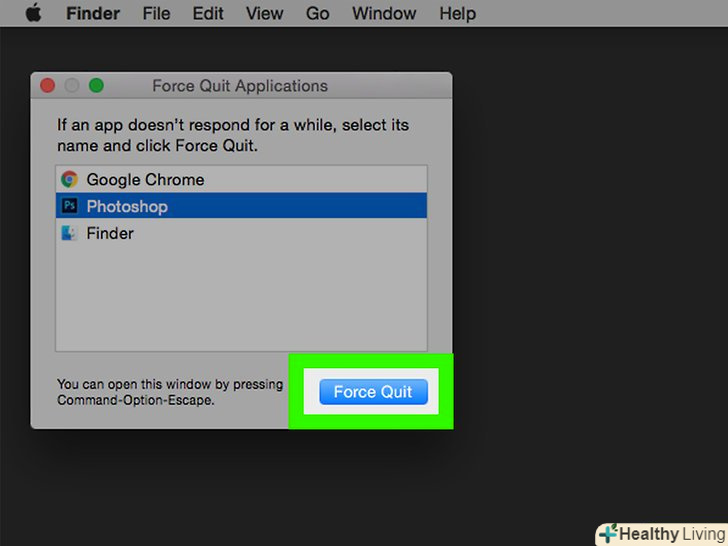 НатиснітьЗавершити примусово, коли з'явиться запит. додаток буде закрито. Якщо комп'ютер почав нормально працювати, проблема була викликана закритою програмою. У цьому випадку рекомендуємо Видалити програму, а потім заново встановити її.- Якщо це не привело до успіху, натисніть і утримуйте клавіші⌘ Command, ⇧ Shift, ⌥ Option і Esc протягом трьох секунд, щоб примусово закрити активну програму.