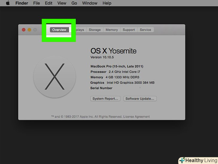 НатиснітьПро це Mac. це опція у верхній частині меню, що випадає.