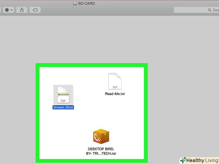 Підключіть SD-карту до комп'ютера.підключіть адаптер SD-карти до USB-порту або USB-C-порту, а потім вставте SD-карту в адаптер.- Якщо у вас Старий Комп'ютер Mac, на ньому може бути слот для SD-карт (на правій панелі). В цьому випадку вставте в нього карту (етикеткою вгору і золотими контактами вперед).