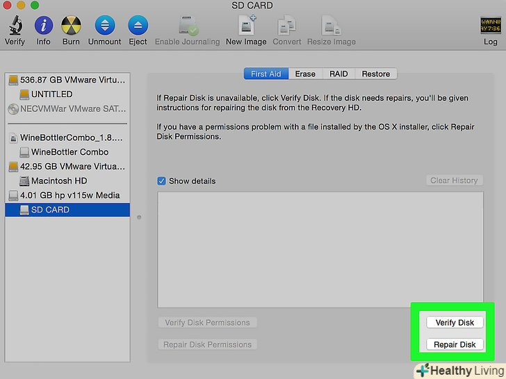 Дозвольте утиліті "Перша допомога" просканувати SD-карту.якщо SD-карта заблокована через помилку, вона буде усунена.