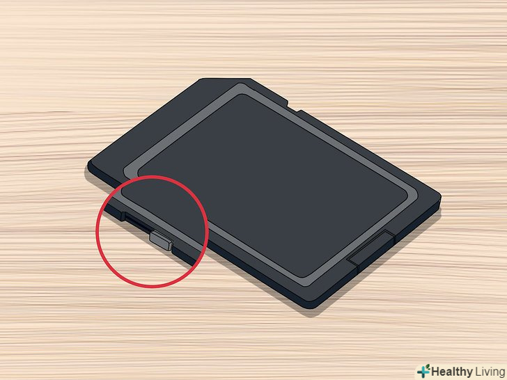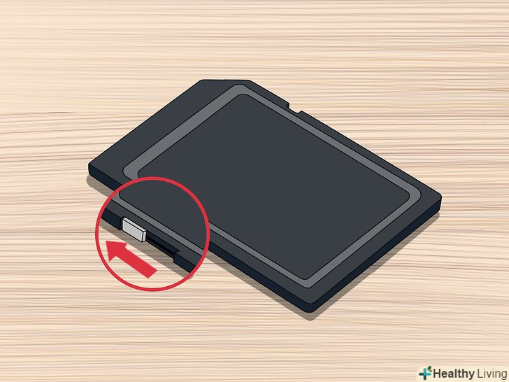 Зніміть захист на запис.для цього пересуньте перемикач у бік золотих контактів у нижній частині SD-карти. Тепер на карту можна записувати файли.[1]