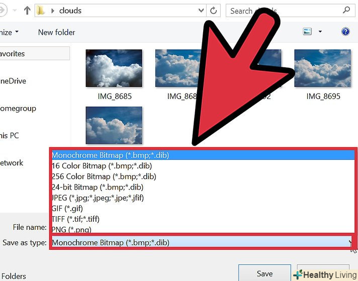 Клікніть по меню, що випадає поруч з "форматування" (Format).у цьому списку має бути близько 12 типів розширень, включаючи JPEG.