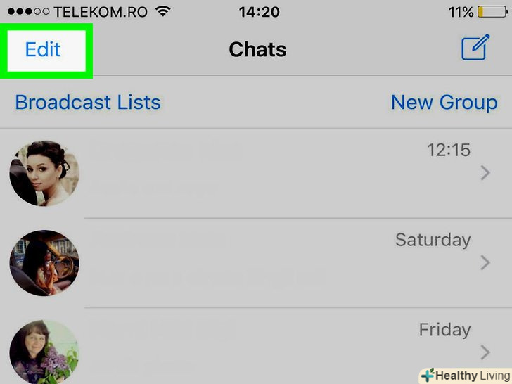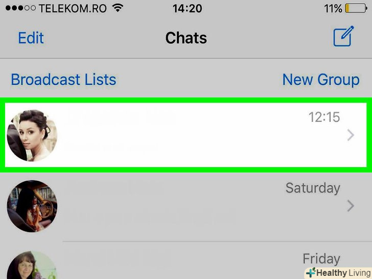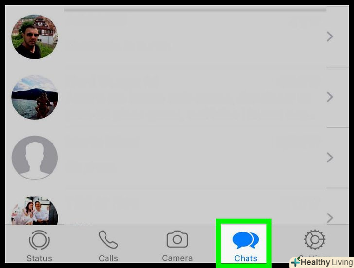 Натисніть на < span class="nowrap" title="This is not a clickable button; it illustrates the button one should find." style="font-family: Segoe UI, Frutiger, Frutiger Linotype, Dejavu Sans, Helvetica Neue, Arial, sans-serif;letter-spacing:0px;padding:0em .6em; border:1px solid; border-color:#AAA #555 #555 #AAA; -moz-border-radius: 0px; -webkit-border-radius: 0px; border-radius: 0px; background-color: #F2F2F2; background-image: -moz-linear-gradient(top, #FCFCFC, #E0E0E0); background-image: -o-linear-gradient(top, #FCFCFC, #E0E0E0); background-image: - webkit-linear-gradient(top, # FCFCFC, #E0E0E0); background-image: linear-gradient(top, #FCFCFC, #E0E0E0);">чати. Вкладка з чатами знаходиться або в нижній частині вікна (на iPhone), або у верхній частині вікна (на Android).- Якщо в WhatsApp відкрився інша розмова, то спочатку натисніть на кнопку "Назад" у верхньому лівому кутку екрану.