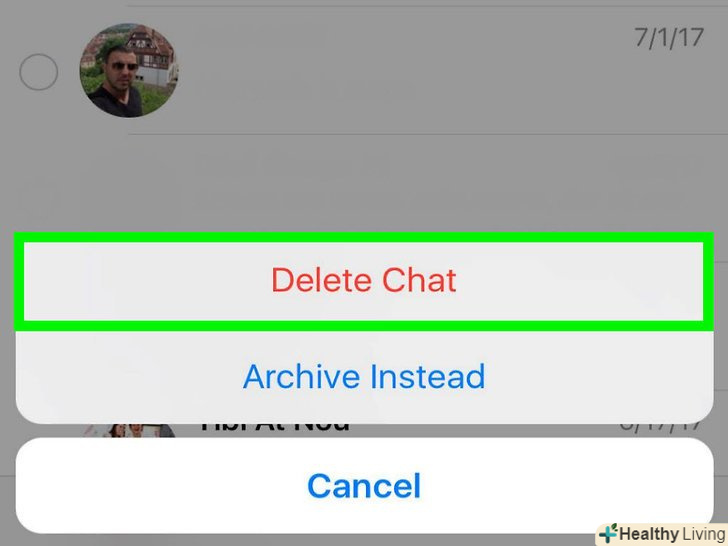 Натисніть < span class="nowrap" title="This is not a clickable button; it illustrates the button one should find." style="font-family: Segoe UI, Frutiger, Frutiger Linotype, Dejavu Sans, Helvetica Neue, Arial, sans-serif;letter-spacing:0px;padding:0em .6em; border:1px solid; border-color:#AAA #555 #555 #AAA; -moz-border-radius: 0px; -webkit-border-radius: 0px; border-radius: 0px; background-color: #F2F2F2; background-image: -moz-linear-gradient(top, #FCFCFC, #E0E0E0); background-image: -o-linear-gradient(top, #FCFCFC, #E0E0E0); background-image: - webkit-linear-gradient(top, # FCFCFC, #E0E0E0); background-image: linear-gradient(top, #FCFCFC, #E0E0E0);">видалити чат.ця опція з'явиться в нижній частині екрана. Вона дозволить видалити розмову зі сторінки "чати".- На Android Ця опція називається просто"видалити".
