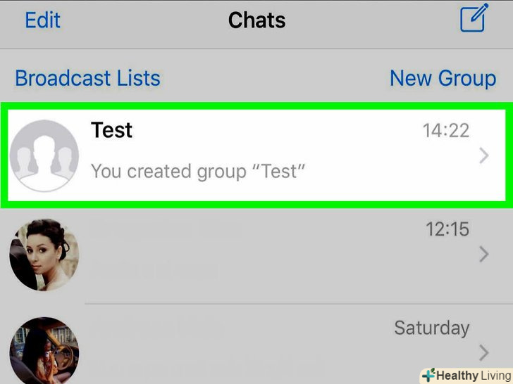 Натисніть на назву групи. воно зазначено у верхньому лівому кутку екрану, праворуч від стрілочки "Назад".