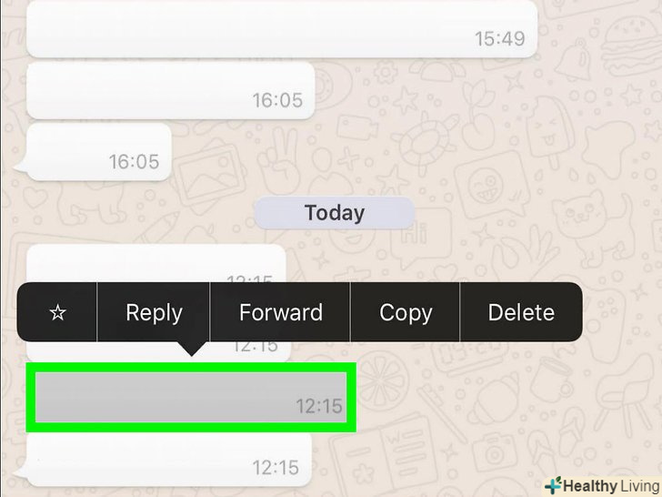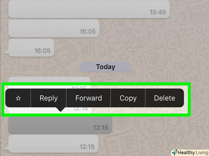 Натисніть і утримуйте повідомлення, яке ви хочете видалити.незабаром над самим повідомленням (на iPhone) або у верхній частині екрана (на Android) з'явиться спливаюча панель опцій.