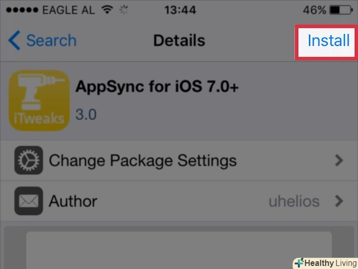 У результатах пошуку виберіть "AppSync", а потім виберіть варіант установки цього додатка. AppSync буде встановлено, а ви перейдете на головну сторінку Cydia.