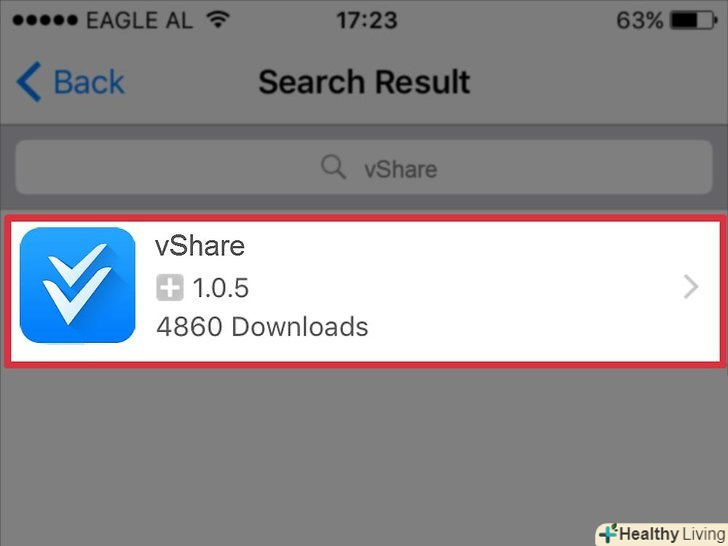 У результатах пошуку виберіть "vShare", а потім виберіть варіант установки цього додатка. Тепер використовуйте vShare, щоб знаходити і встановлювати зламані програми.[2]