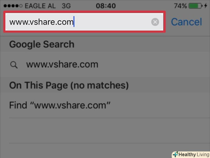 Натисніть на "Search «(Пошук) внизу екрану, а потім в рядку пошуку введіть»vShare".