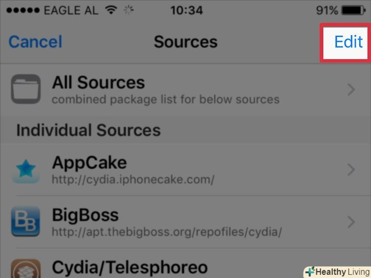 Натисніть "Sources" (Джерела) gt;» Edit " (змінити) у верхньому правому куті екрана.