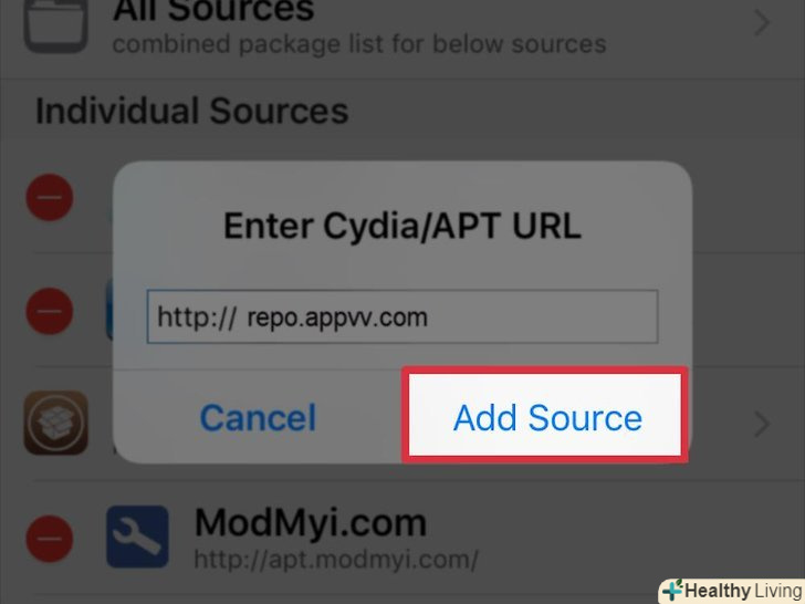 Натисніть на " Add Source "(Додати джерело).Cydia перевірить новий репозиторій.
