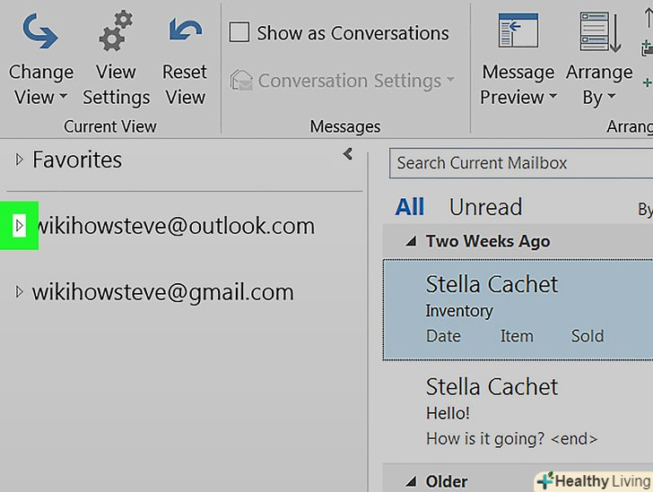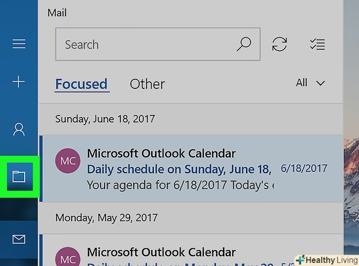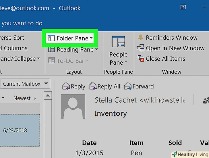 Клацніть поПанель папок. ця опція відзначена значком у вигляді квадрата з синіми рисами по лівому краю. Розкриється меню.- На комп'ютері Mac клацніть по значку у вигляді конверта, який знаходиться в лівому нижньому кутку.