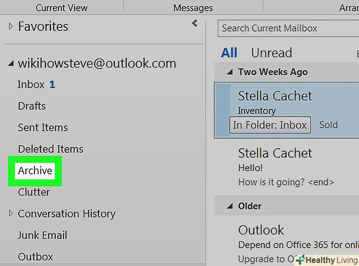 НатиснітьАрхів.тепер архівовані листи можна знайти на панелі навігації в розділі «Архів».