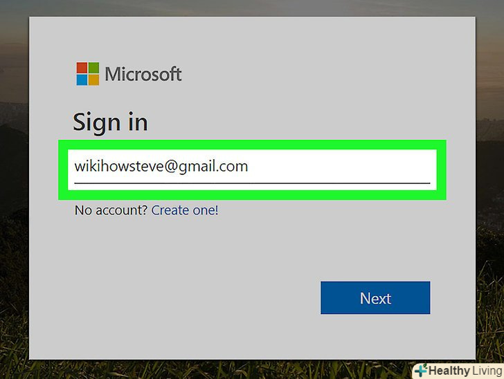 Увійдіть у свою поштову скриньку Outlook.для цього введіть адресу електронної пошти та пароль.- Якщо у вас немає поштової скриньки Outlook, безкоштовно створіть його. Для цього натисніть "Створити" під рядками для введення електронної адреси і пароля.